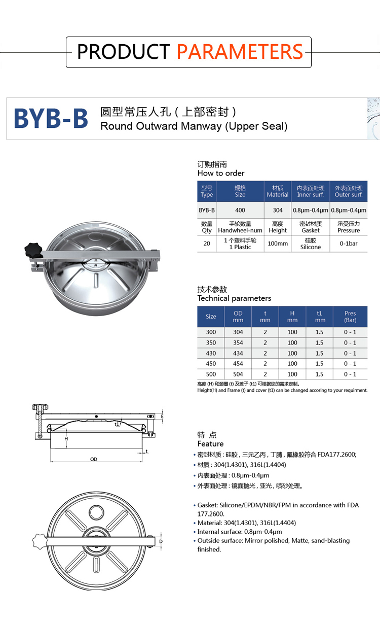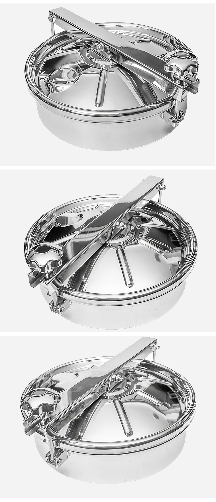 Sanitary Manways is the manhole cover of tank which made of SS304 or SS316L, it make fast, convenient and easy entry and egress to the tank. Wellgreen sanitary offers a full line tank manways for processing tank, including high pressure manways, circular manways, oval manways, square manways etc and assembling of sanitary gaskets, tri-clamps, unions etc. Sanitary manways is widely applied to storage vessels in the industries of brewery, dairy, food, cosmetic, bio-pharmaceutical etc.