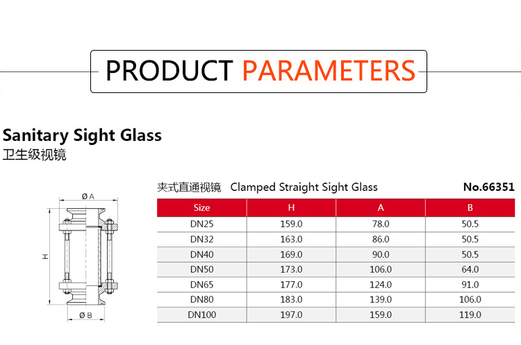Product name:YOULI Best-in-Class Hygienic Food Grade Sanitary Stainless Steel 304 316L Protective Flow Straight Tri Clamped Sight Glass