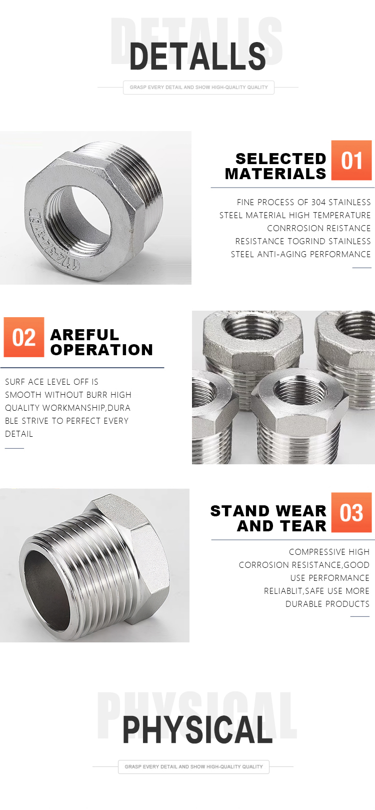 Products Name:YOULI Stainless Steel 304 SS316L BSP NPT Pipe Fitting Hexagonal Reducing Threaded Bushing